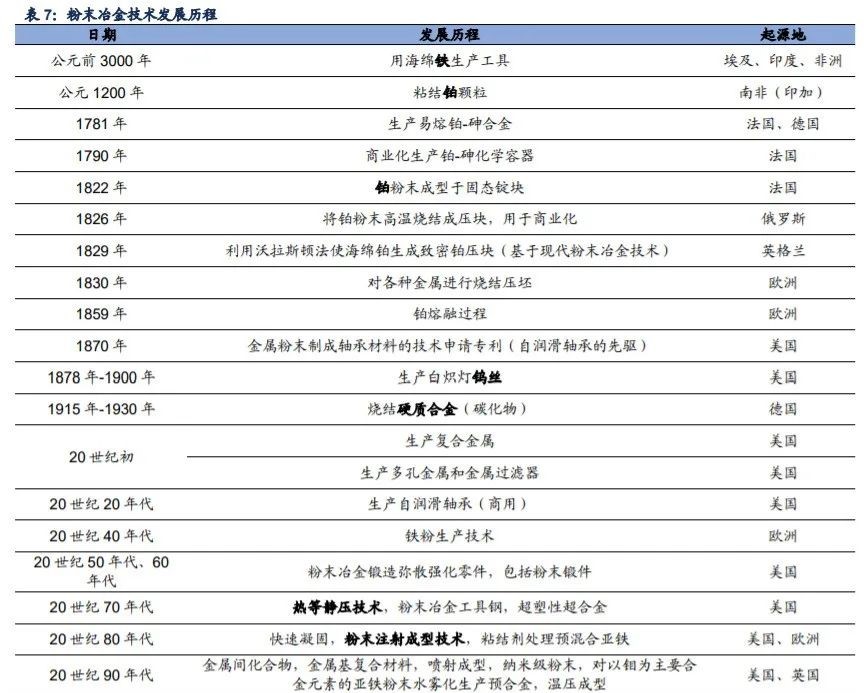 1、粉末冶金發(fā)展歷程